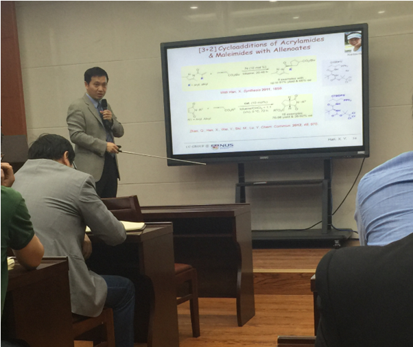 邀请,新加坡国立大学卢一新教授就基于氨基酸的双功能磷催化剂在对映选择性反应中的应用做了精彩的英文报告,报告由91吃瓜