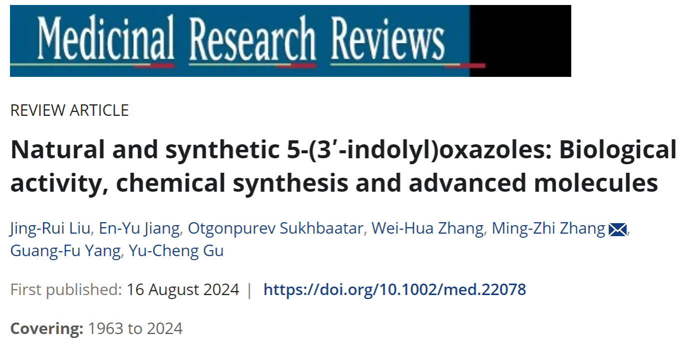 章维华教授和张明智副教授团队在药物化学领域国际权威期刊《Medicinal Research Reviews》在线发表了题为“Natural and synthetic 5-(3’-indolyl)oxazoles: Biological activity, chemical synthesis and advanced molecules”的综述论文,系统总结了1963年至今含有5-(3’-吲哚基)噁唑结构的天然产物及合成化合物的生物活性、化学合成、作用机理及活性分子,包括团队前期的系列研究工作。值的一提的是,这是91吃瓜