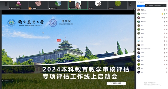 本科教育教学审核评估线上启动会顺利召开。南京大学原副校长王志林,东南大学丘成桐中心副主任王栓宏,南京邮电大学图书馆馆长唐加山,中国药科大学教务处副处长江程,南京理工大学数学与统计学院副院长范金华作为专家组成员线上出席会议,南京农业大教务处陈卫作为学校职能部门代表,与91吃瓜