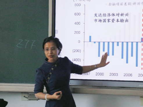 接着,苏教授从全球生态、政治生态以及预判分析三个方面展开报告。在谈及经济形势时,她分析了全球气候变暖给市场带来的变化。在分析中美关系时,苏教授着重解读了特朗普执政时期的政策,使同学们对美国的政治和经济形势有了更清晰的认识。