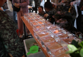 无论是各种美味的食物或是精美的香囊还是特色花木盆景……通过扫码关注形式即可领取。同学们品尝特色美食,观赏绿色盆景、蝶尾金鱼,不仅使同学们了解了如皋农产品品牌故事,也让他们对科技引领下的农业产业多元化、品牌化发展产生了浓厚的兴趣,激发了同学们对三农事业的热情,引导了同学们为实现农业强、农村美、农民富的目标贡献青春力量。