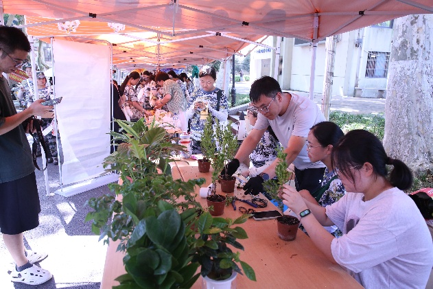非遗展区则通过互动体验拉近青年与传统文化的距离。如皋花木盆景艺术以“缩龙成寸”的技艺展现自然之美,郭氏风筝传承人现场指导师生制作微型风筝,蝶尾金鱼在透明鱼缸中摇曳生姿,引得众人拍照打卡。非遗香囊摊位前,学生们亲手缝制寓意吉祥的香包,感受针线间的文化温度。