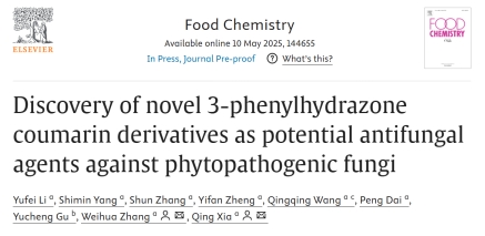 章维华教授和夏青副教授团队在农林科学国际权威期刊《Food Chemistry》在线发表了题目为“Discovery ofNovel 3-Phenylhydrazone Coumarin Derivatives as Potential Antifungal Agents Against Phytopathogenic Fungi”的研究论文。